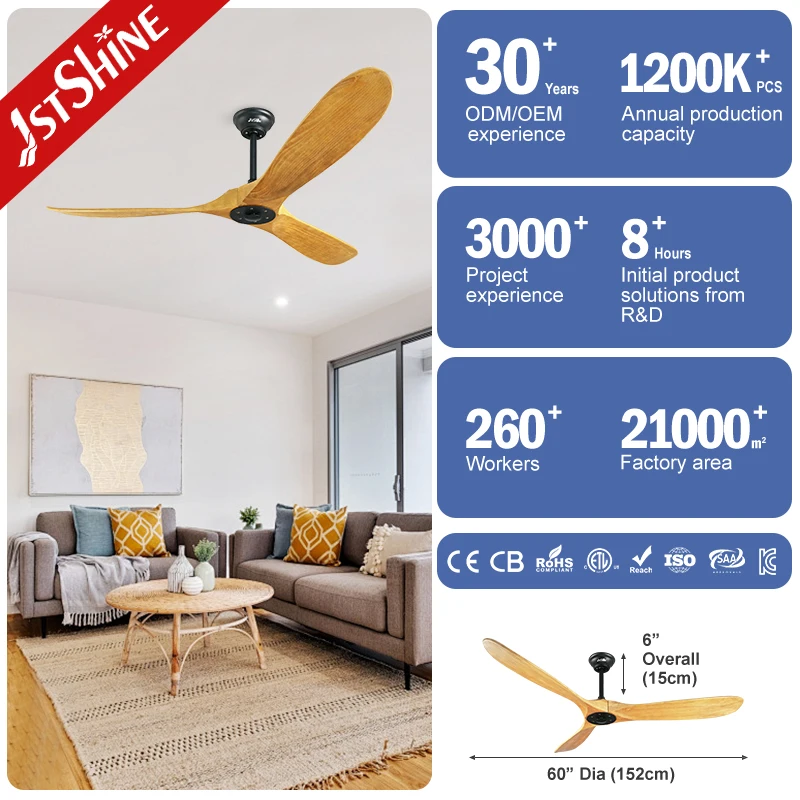 1stshine Ceiling Fan Designer 60 Inches Ceiling Fan Wooden Blades Remote Control