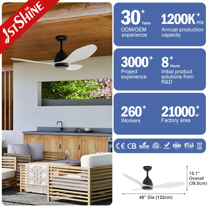 1stshine Ceiling Fan Decorative White 3 Plastic Blades Adjustable Wind Speed High Ceiling Fan Without Light