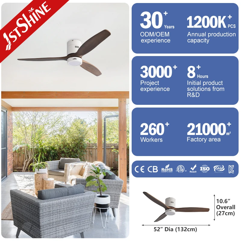 1stshine Ceiling Fan Flush Mounted 3 Wooden Baldes AC Ceiling Fan with Light and Remote Control