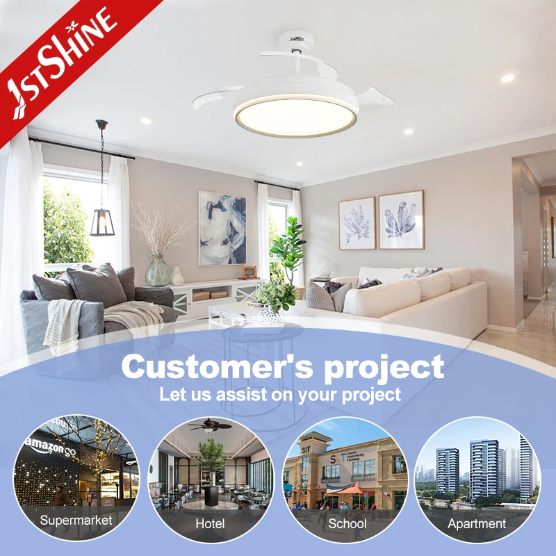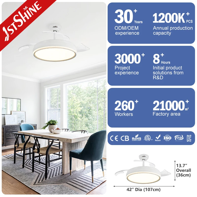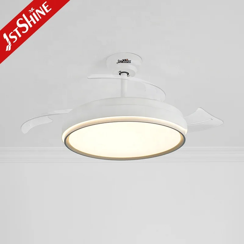 1stshine LED Ceiling Fan Space Saving 42 Inches Invisible Blades DC Motor White Retractable Ceiling Fan