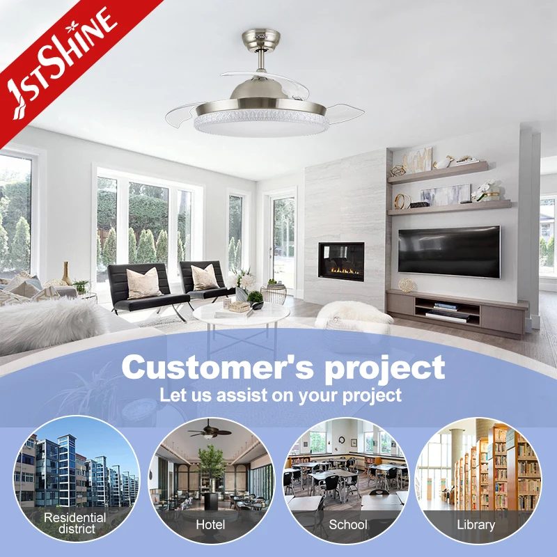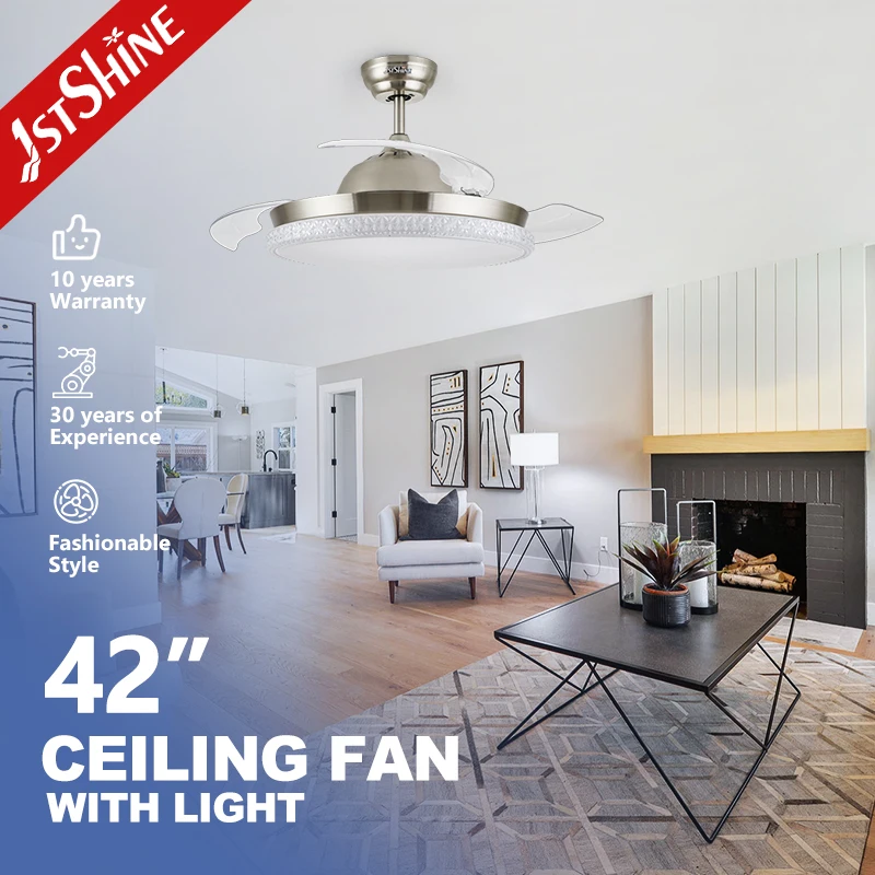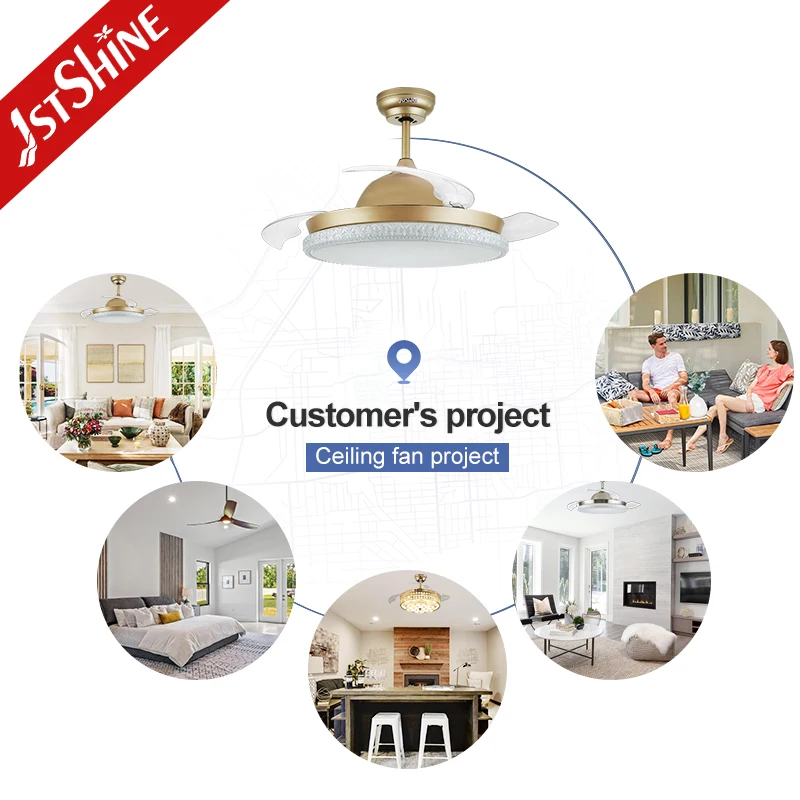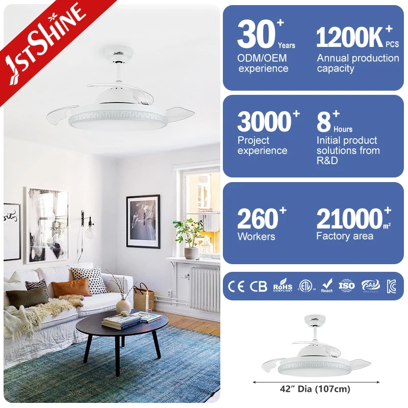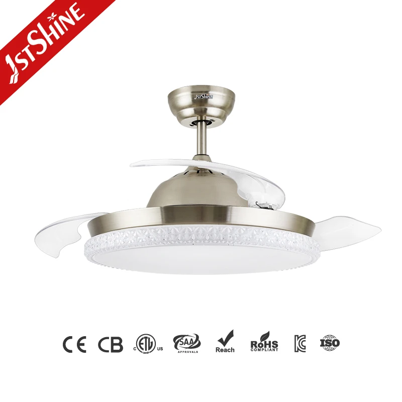 1stshine LED Ceiling Fan Simple Remote 3 Blade Dimmable Color Retractable Led Ceiling Fan Light