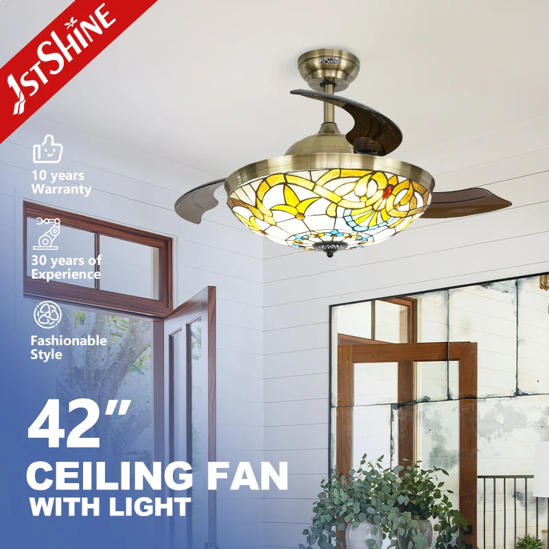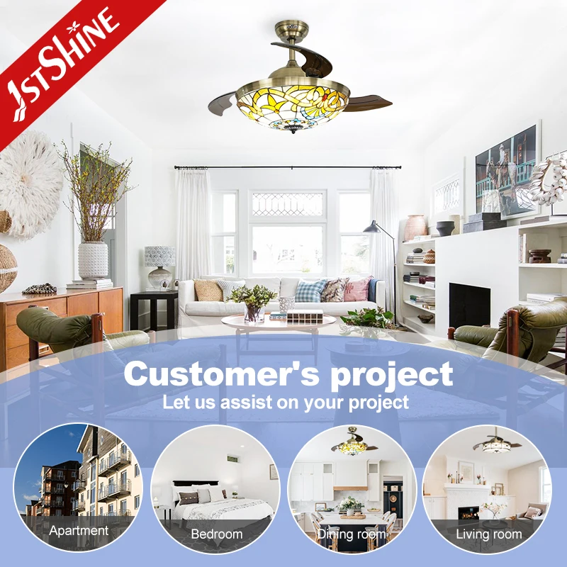 1stshine LED Ceiling Fan Decorative Lighting ODM Acrylic Blades Retractable Ceiling Fan with Light