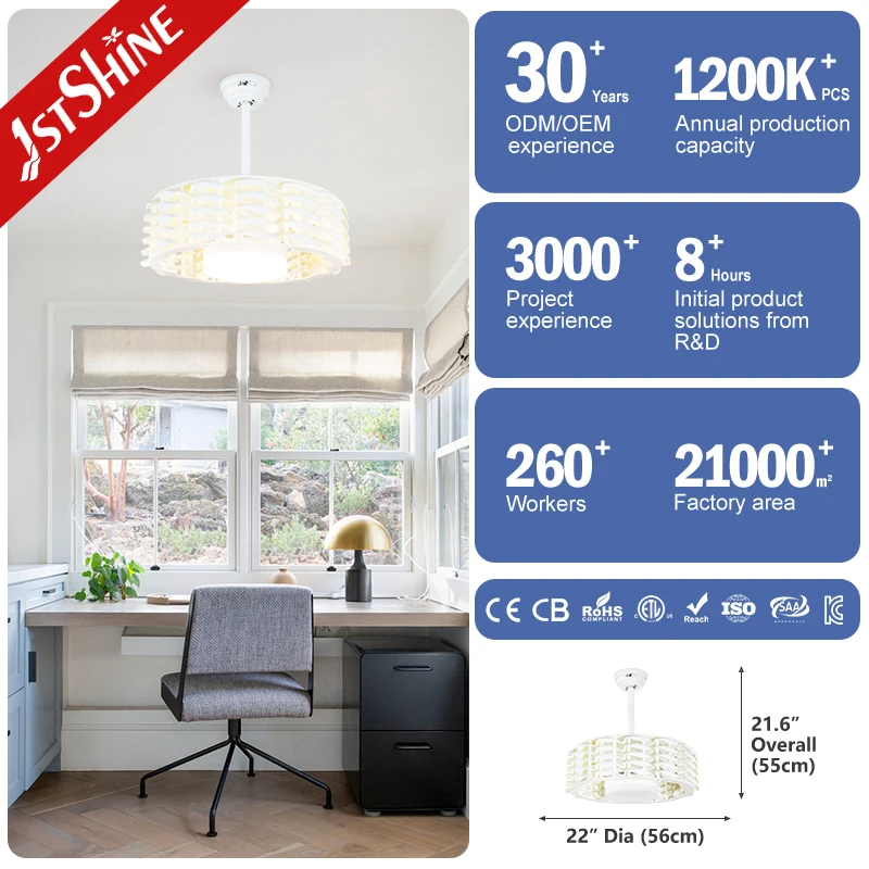 1stshine Ceiling Fan Smart 6 Speeds Remote Control DC Motor 22 Inches White Bladeless Ceiling Fan Light