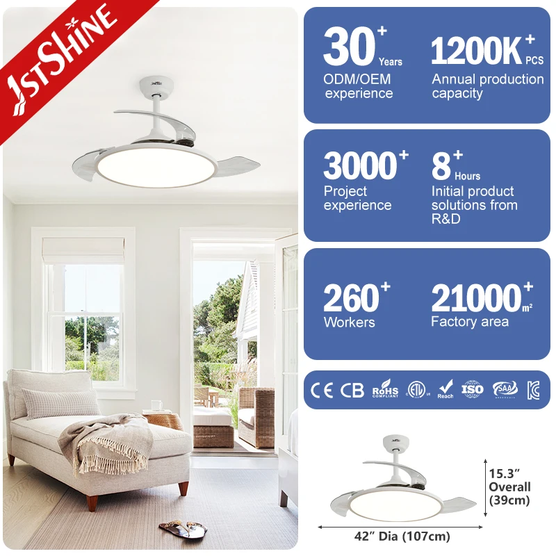 1stshine LED Ceiling Fan Ultra-thin Retractable Hidden Blades Adjustable LED Light Invisible Ceiling Fan with Light