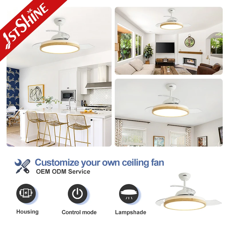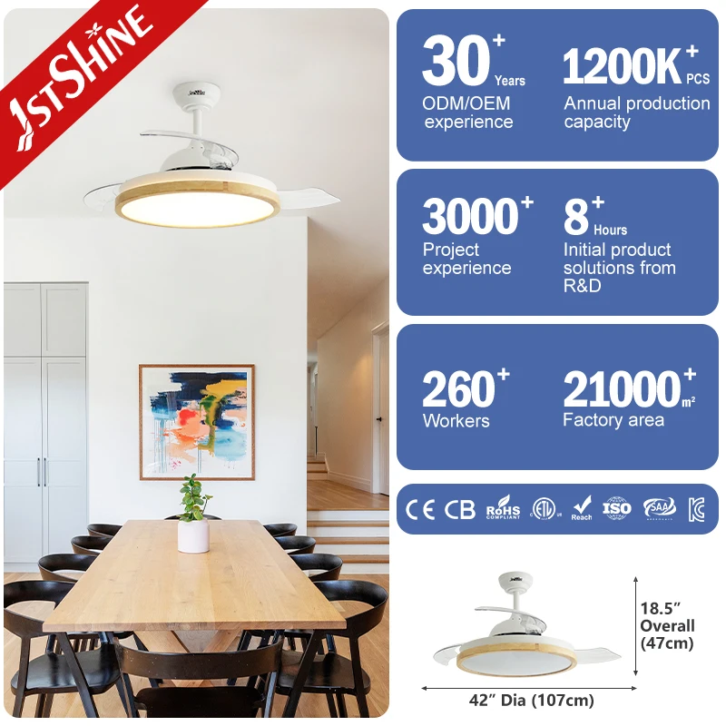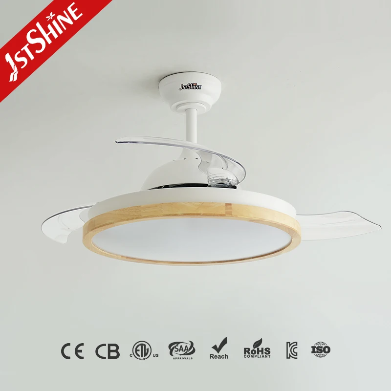 1stshine LED Ceiling Fan Retractable PC Blades Dimmable LED Lighting Invisible Ceiling Fan with Remote