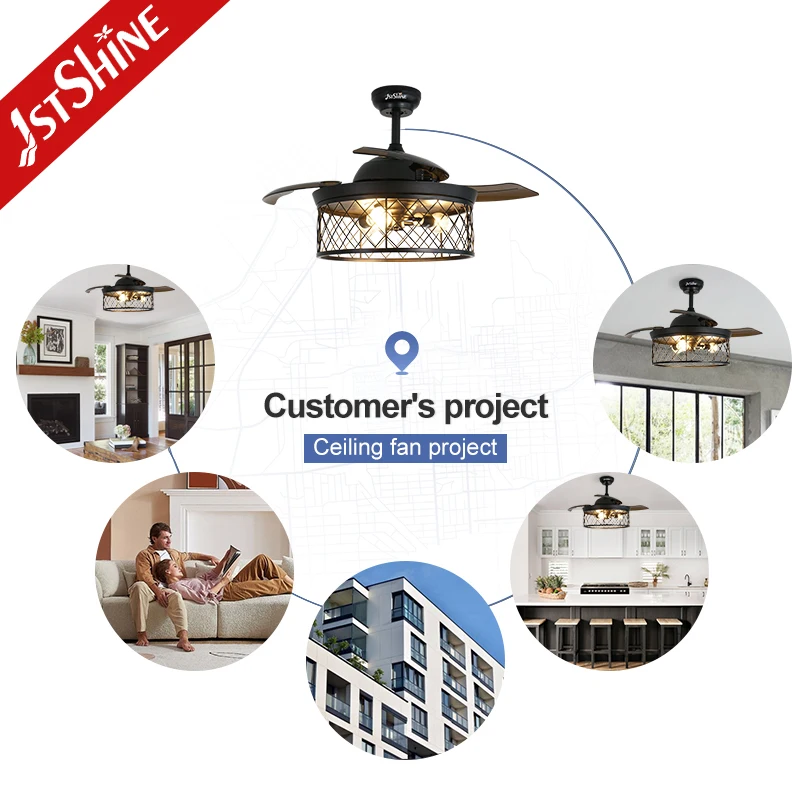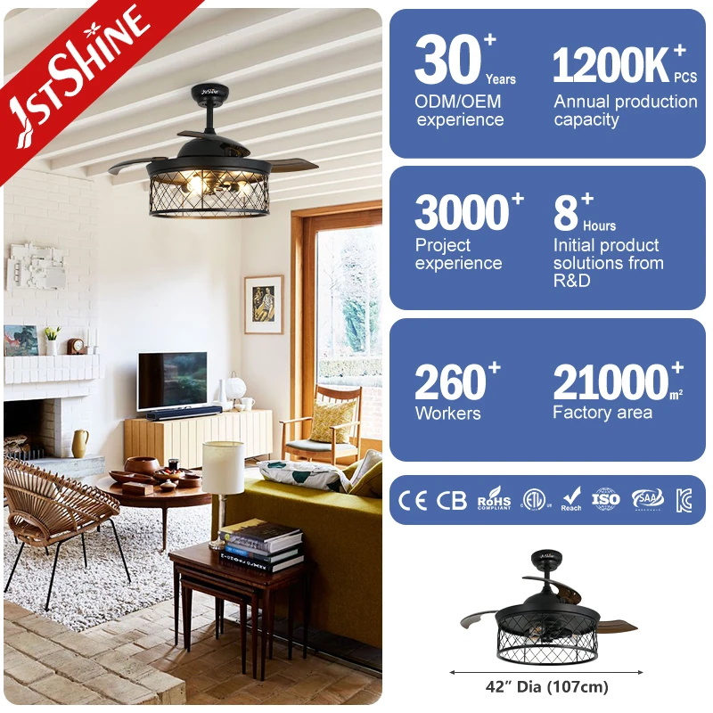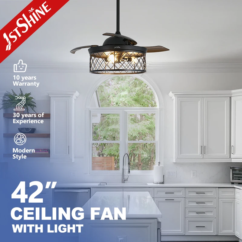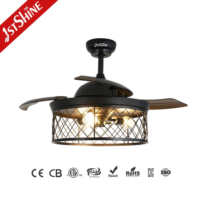 1stshine Ceiling Fan Iron Design Folding PC Blades Remote Control 42 Inches Retractable Ceiling Fan Light
