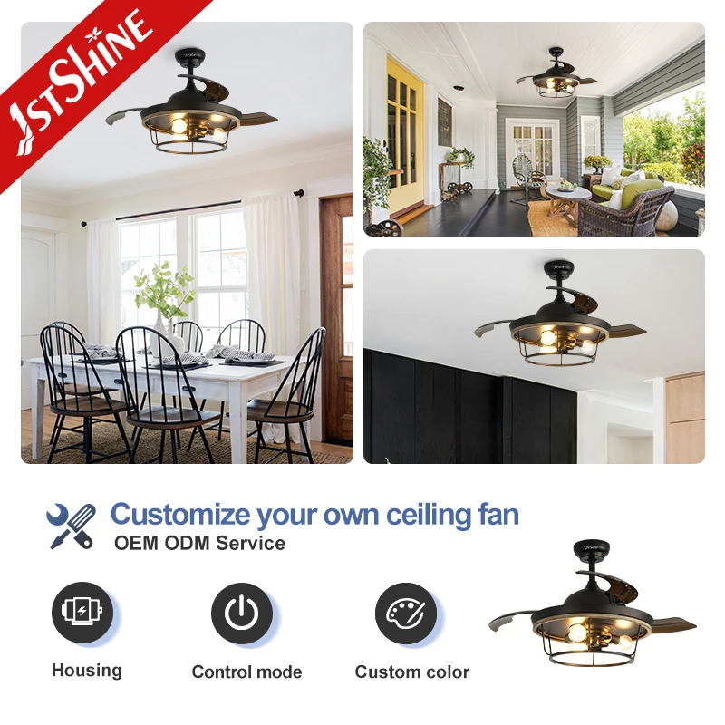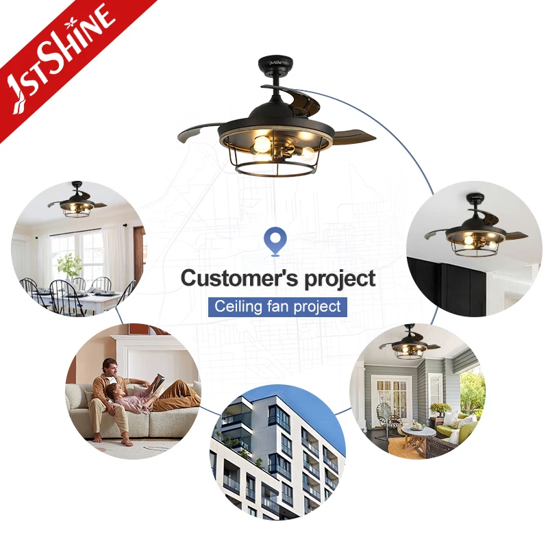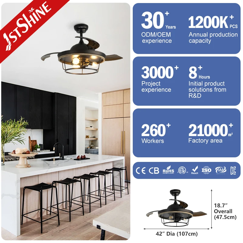 1stshine Ceiling Fan Light Easy Installation Hidden PC Blades 42 Inches Invisible Ceiling Fan with Remote
