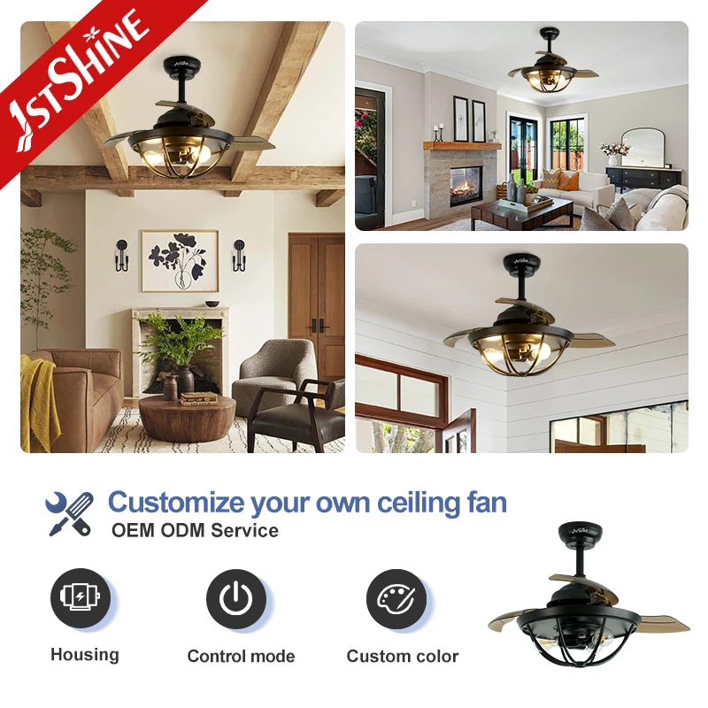 1stshine Ceiling Fan DC 100% Copper Motor Black Finish Lighting Invisible Ceiling Fan With Remote Control