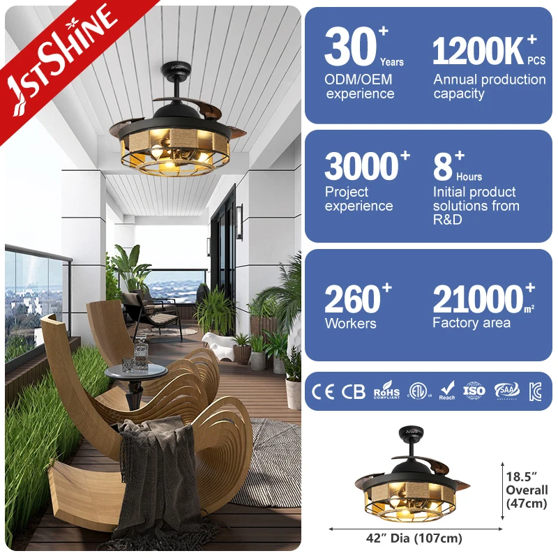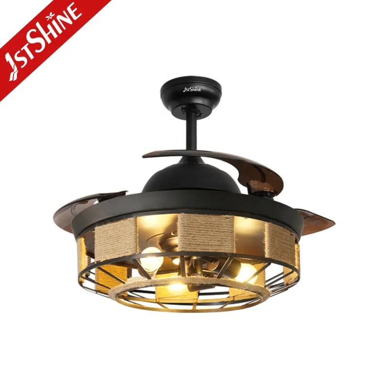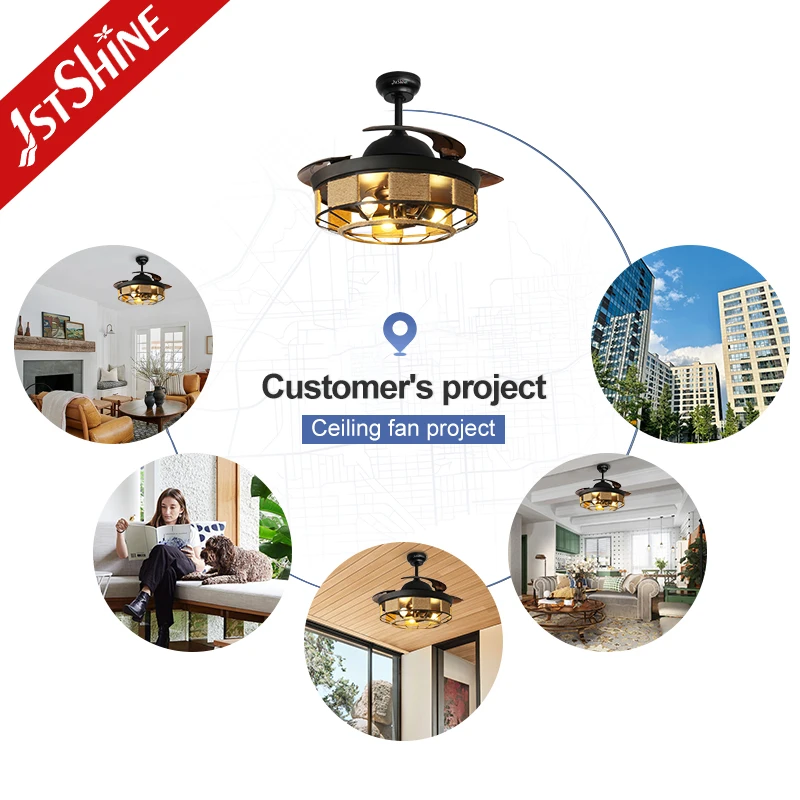 1stshine LED Ceiling Fan Factory Time Setting High Speed Plastic Blades Retractable Ceiling Fan Light
