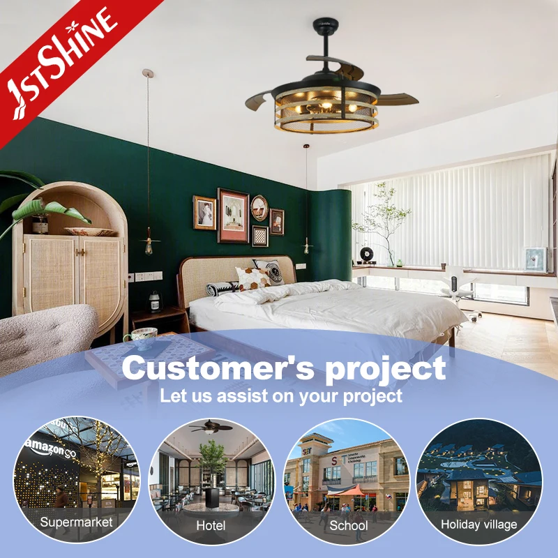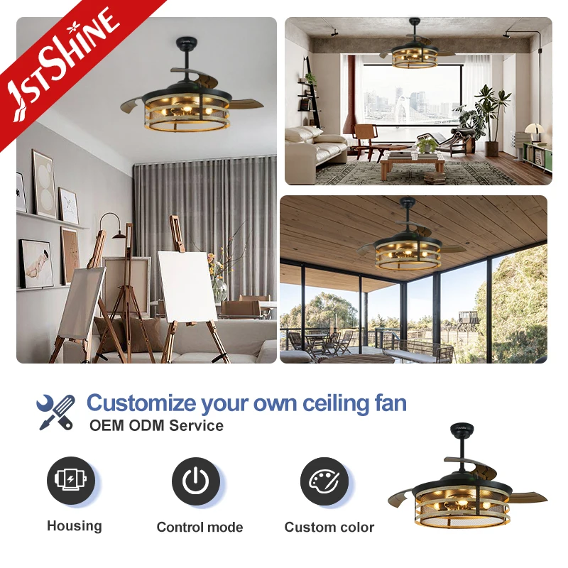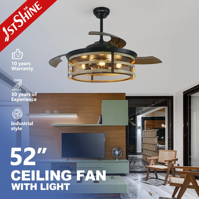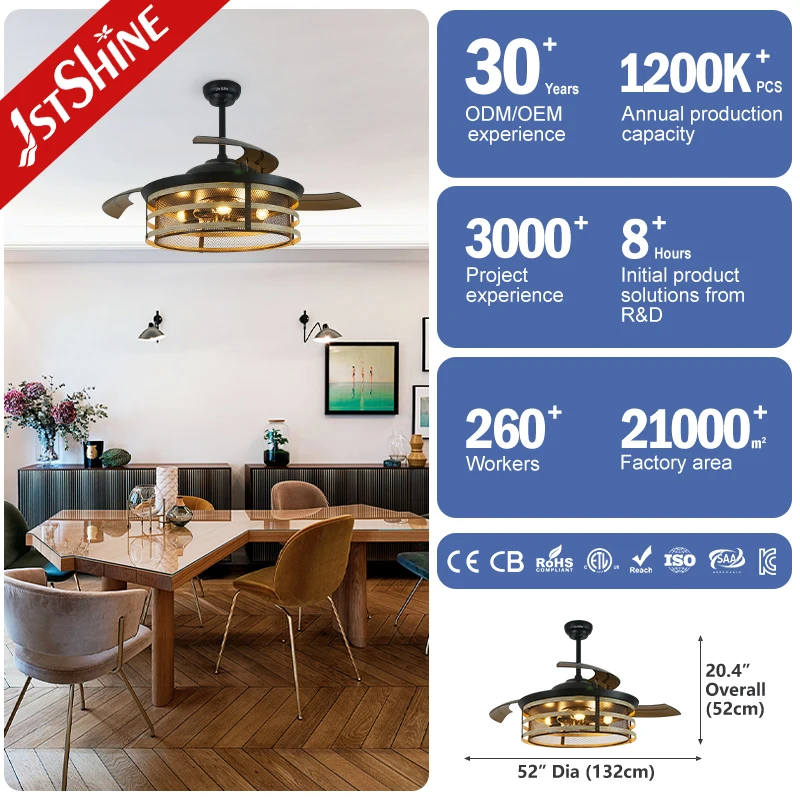 1stshine Retractable Ceiling Fan High Quality 52 Inches PC Blades Invisible Ceiling Fan with Led Light