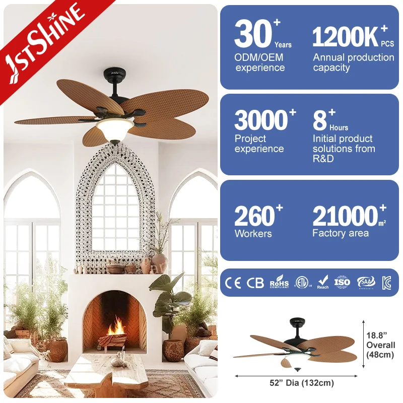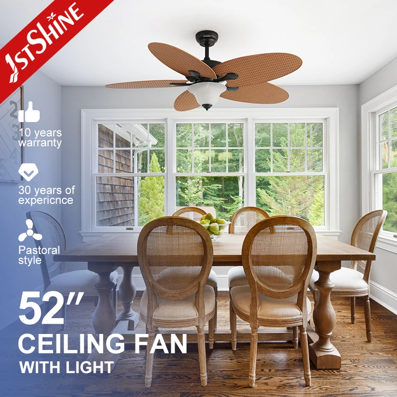 1stshine LED Ceiling Fan 52 Inches 6 Speeds High Quality Imitated Rattan Weaving Leaf Ceiling Fan With Remote