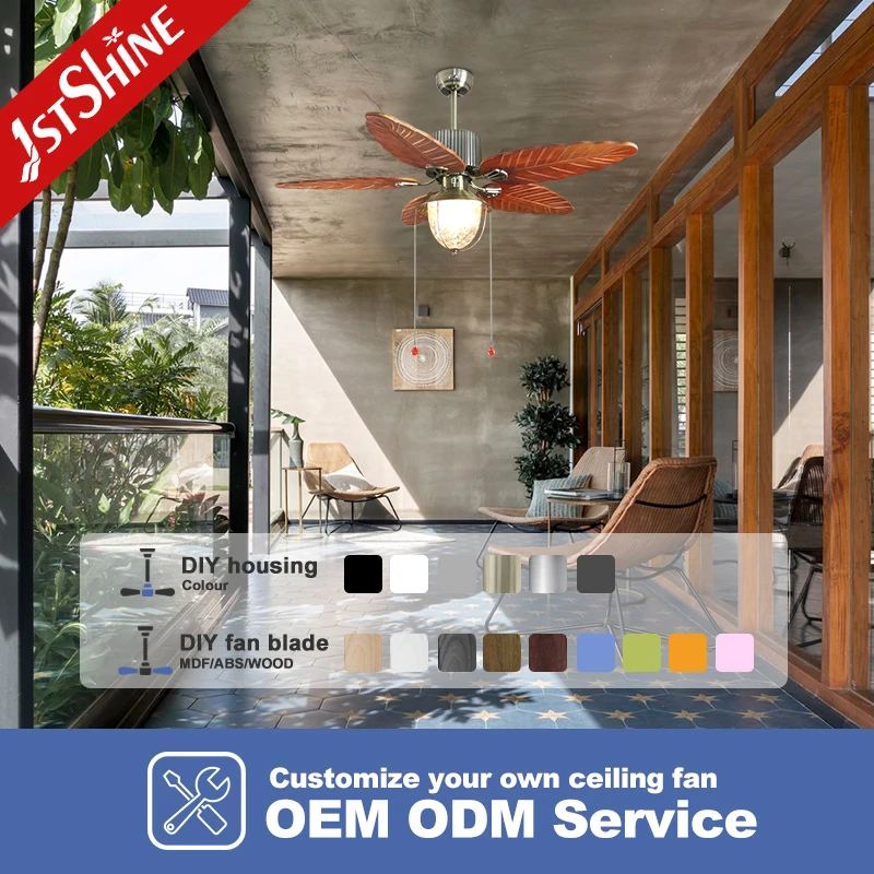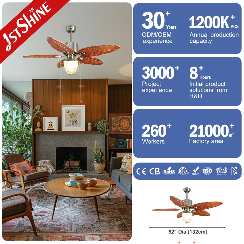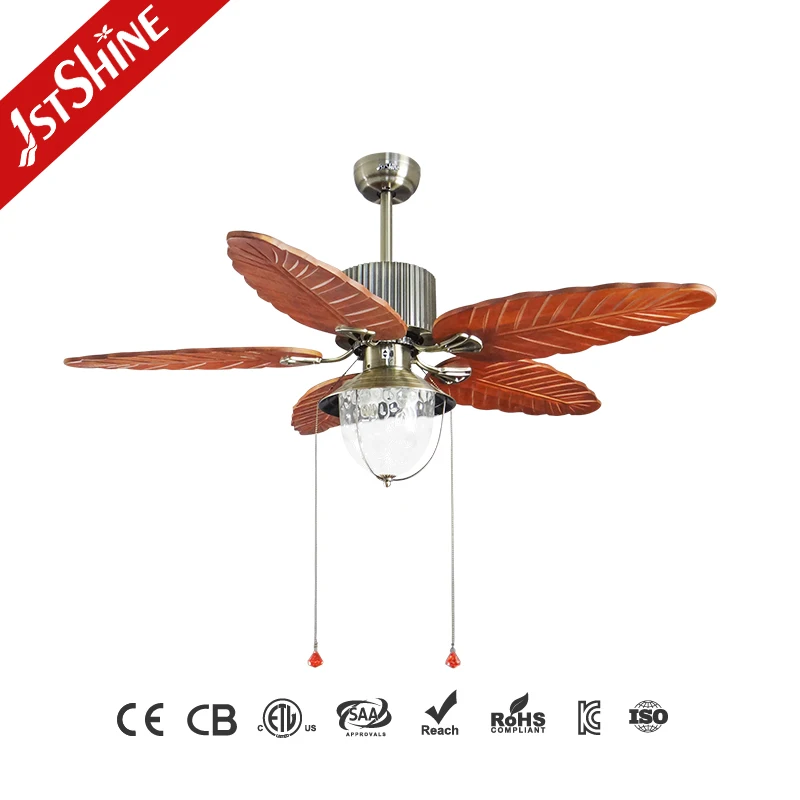 1stshine Ceiling Fan Light Classic Design 52 Inches Wood Blade Pull Chain Control Switch Decorative Ceiling Fan with Lights
