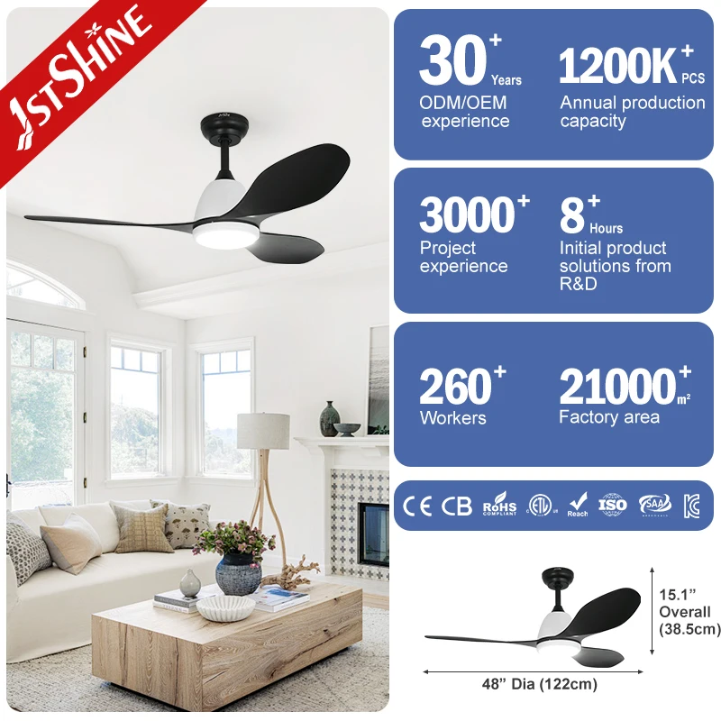1stshine Led Ceiling Fan Indoor Silent Motor Low Noise High Airflow LED Lighting Ceiling Fans