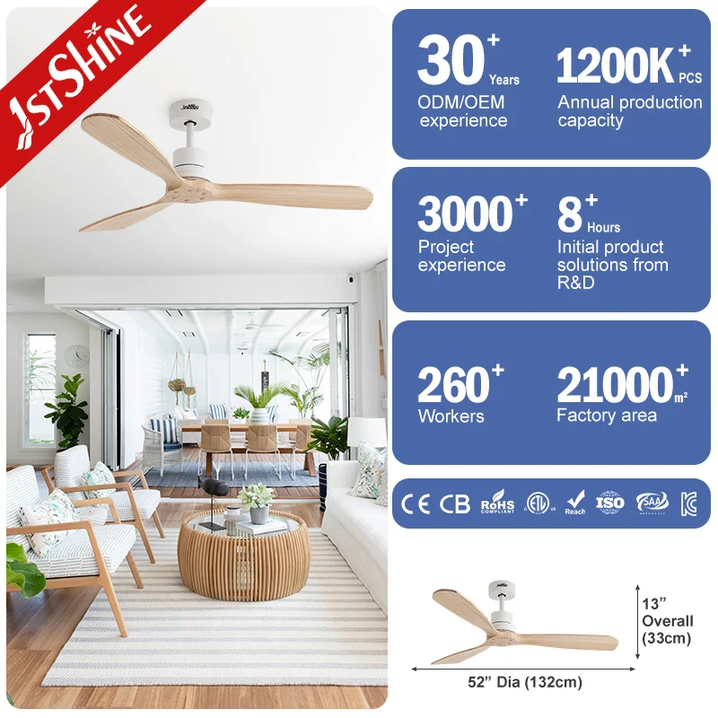 1stshine Ceiling Fan Reversible DC Motor 6 Speeds App Smart Control 3 Blades Wooden Ceiling Fan