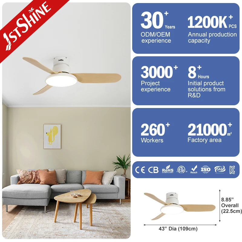 1stshine Led Ceiling Fan1stshine Led Ceiling Fan Minimalist 43 Inches Remote Control Smart Low Profile LED Ceiling Fan Light