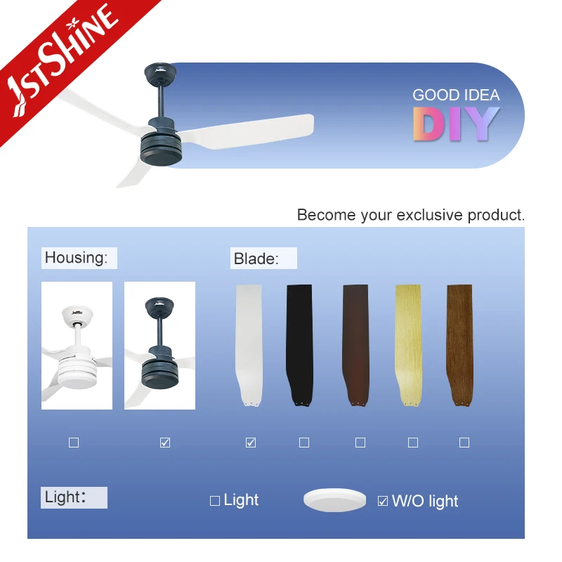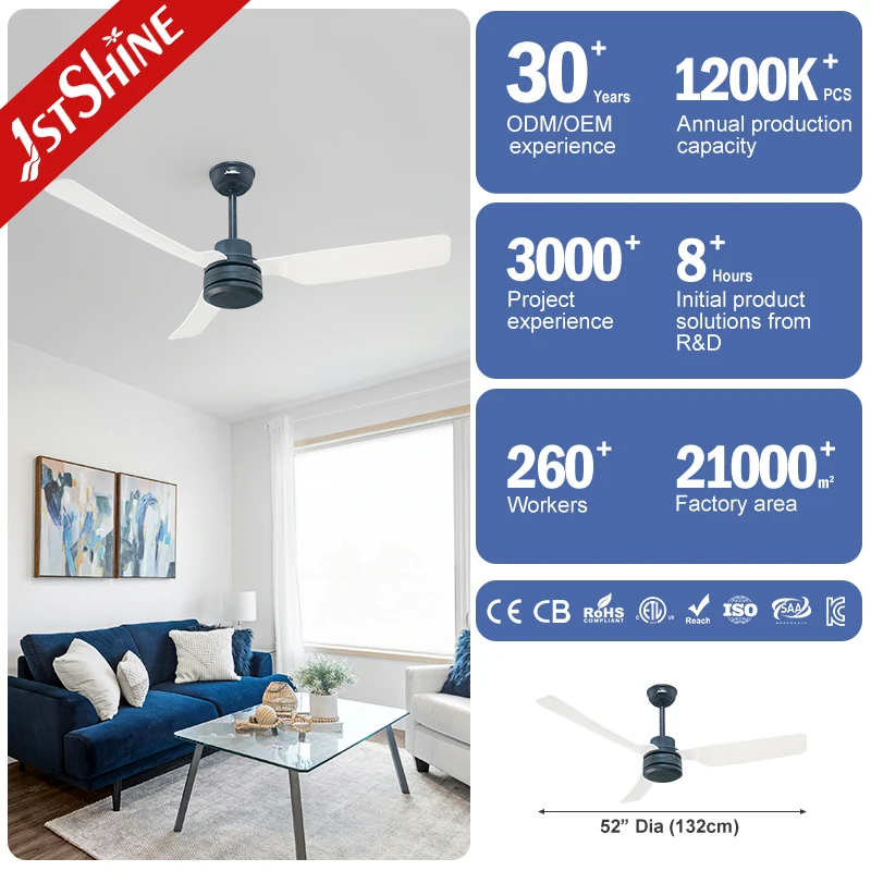 1stshine Ceiling Fan Modern 52 Inches No Light ABS Blades DC Motor Ceiling Fan with Remote Control