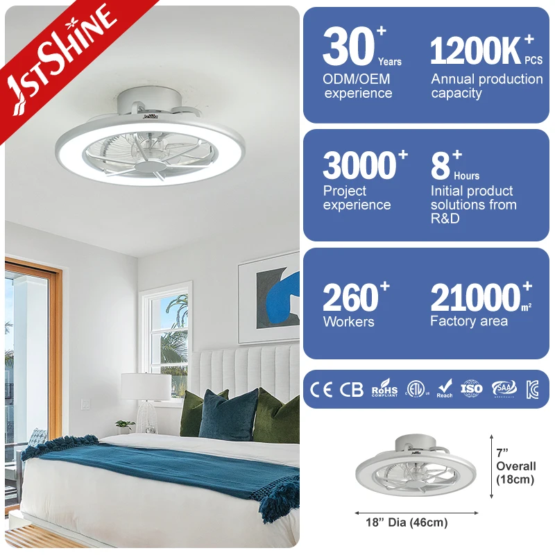 1stshine LED Ceiling Fan Bedroom 18 Inches Flush Mounted Dimmable Ceiling Fan with Led Light