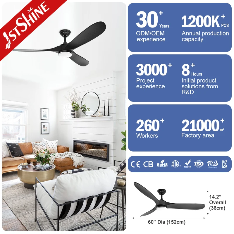 1stshine LED Ceiling Fan Rustic 60 Inches Big Energy Efficient Ceiling Fan with Wood Blades