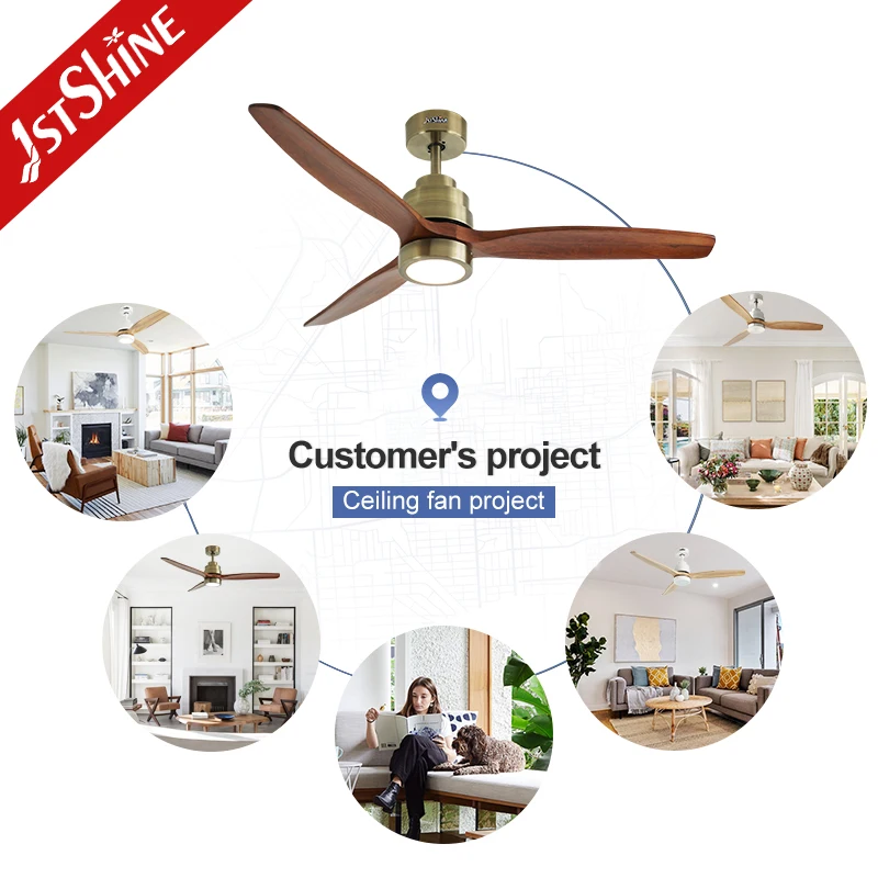 1stshine LED Ceiling Fan Wooden Blades Time Setting Adjustable Wind Speed High Ceiling Fan