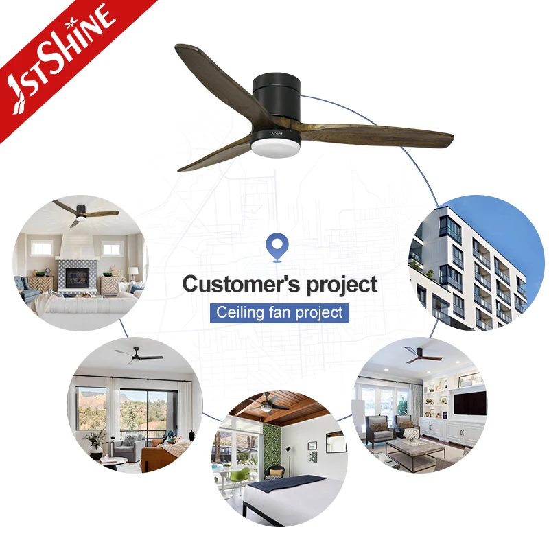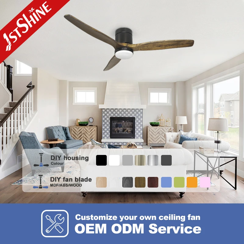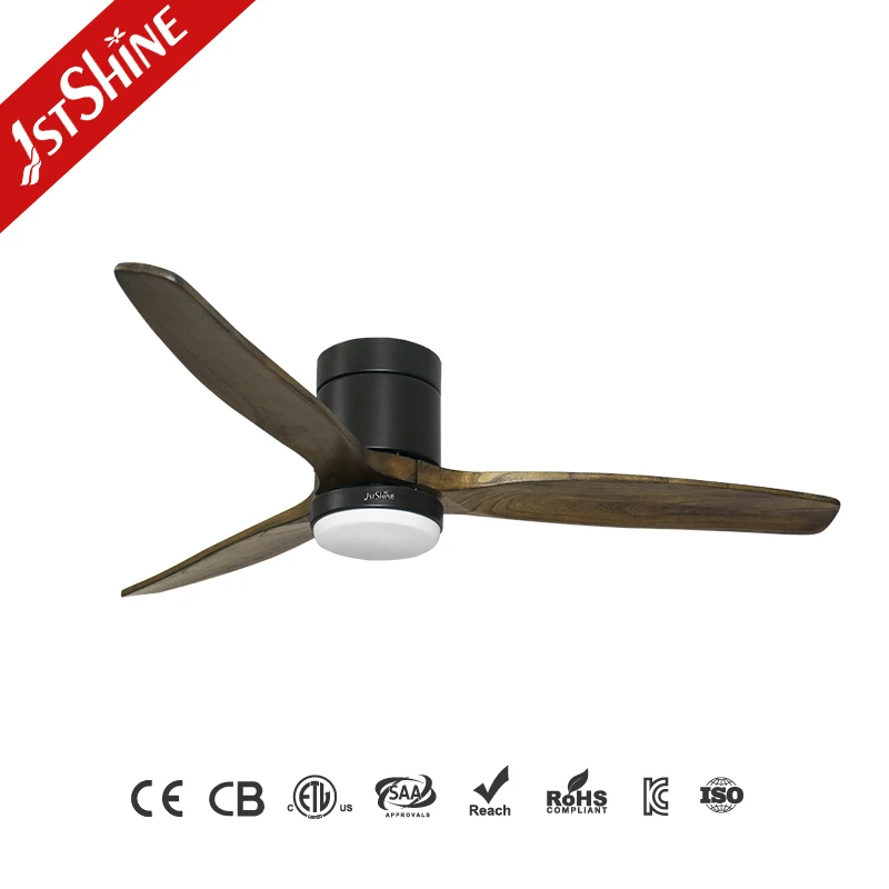 1stshine LED Flush Ceiling Fan Interior Wooden Blades DC Motor LED Light Remote Ceiling Fan