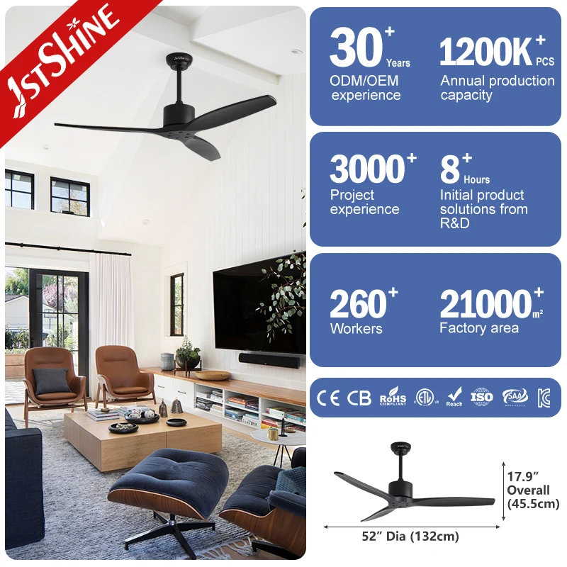 1stshine Ceiling Fan 3 Wooden Blades Smart Remote Control DC Motor Ceiling Fan Without Light