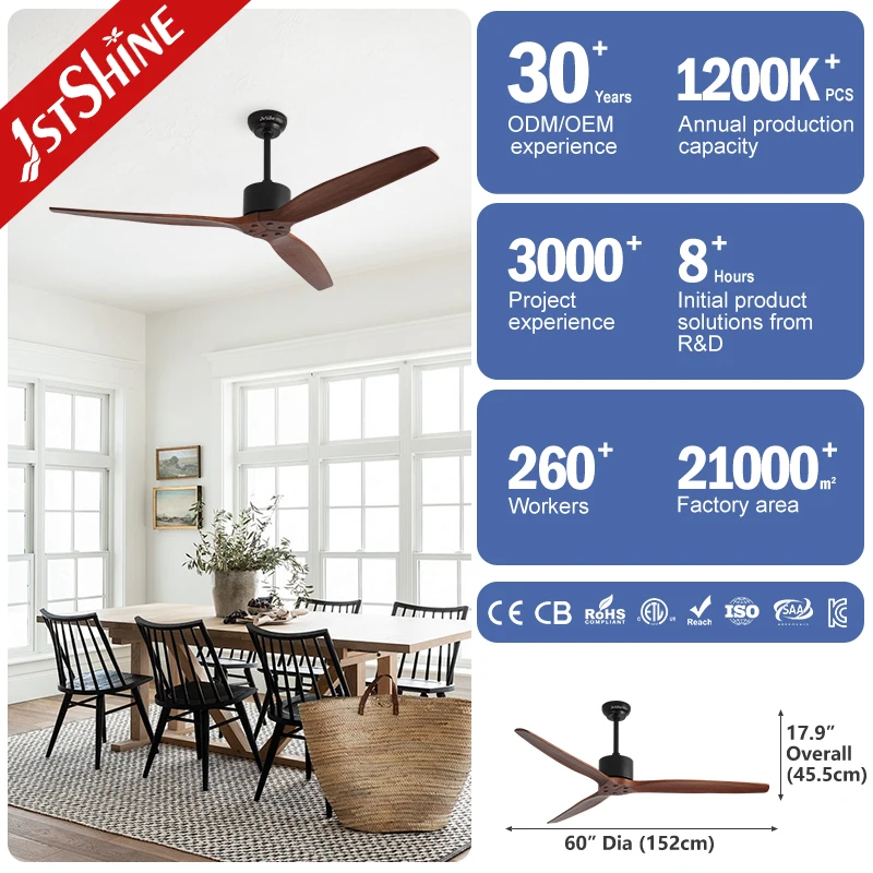 1stshine Ceiling Fan Wooden Blades Silent DC Motor Energy Saving Ceiling Fan with 6 Speeds Remote Control