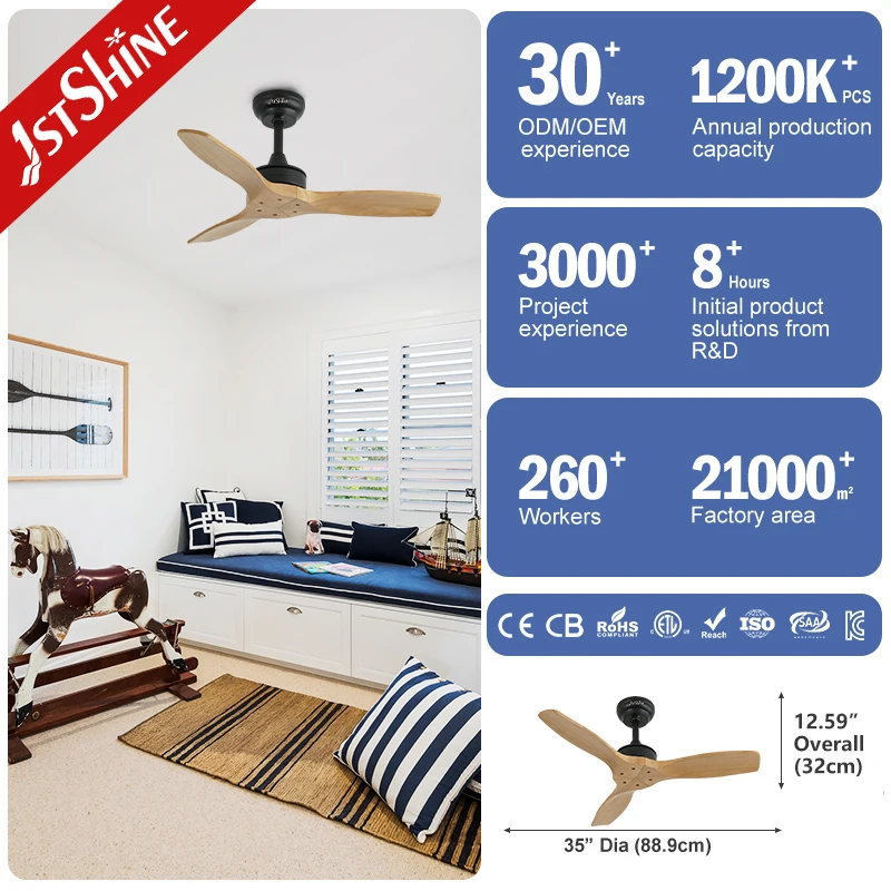 1stshine Ceiling Fan Manufacture 35 Inches Solid Wood Blades Smart Time Setting Remote Control Small Ceiling Fan
