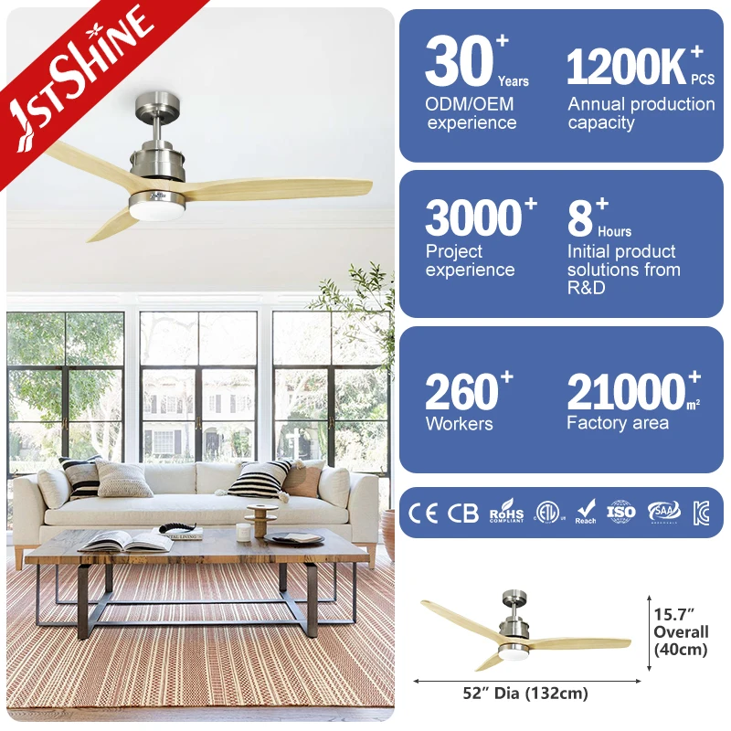 1stshine Ceiling Fan Stable Illumination Multi Color Wooden Blades Led Ceiling Fans with Smart Control