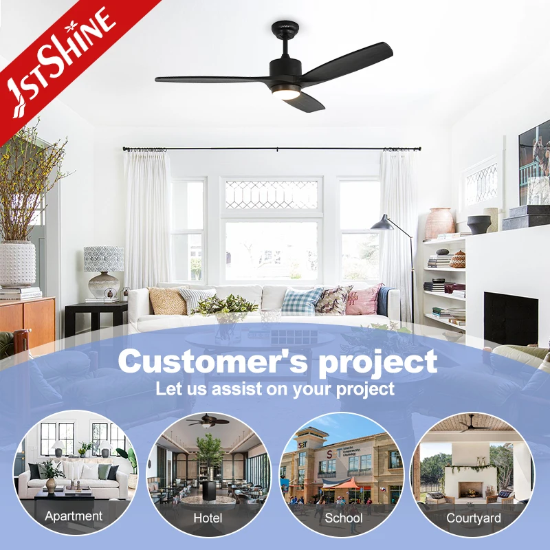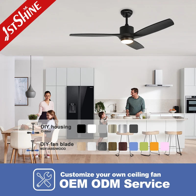 1stshine LED Ceiling Fan Black Solid Wood Blades Mute Copper Reversible Motor Dimmable Led Ceiling Fan and Light