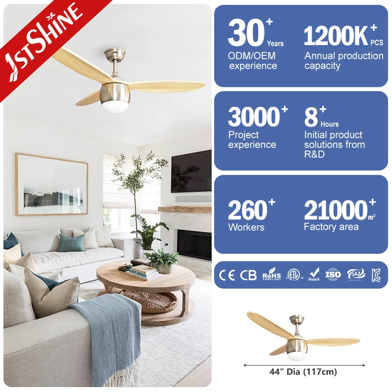 1stshine Ceiling Fan Indoor European Style 44 Inches Wood Blades 3 Color LED Lighting Remote Ceiling Fans