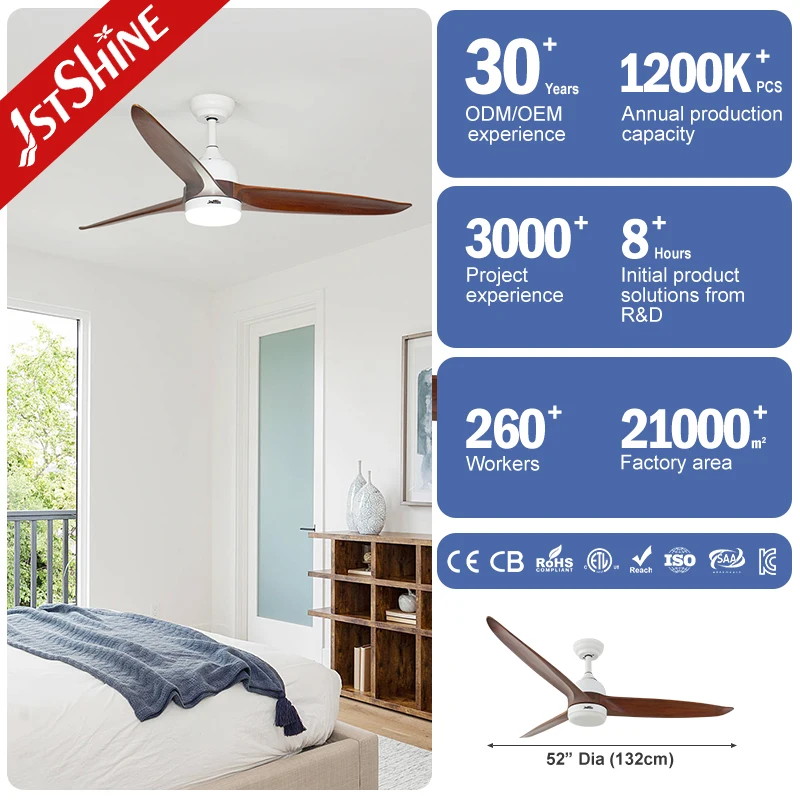 1stshine LED Ceiling Fan Nature Wood Sleek Blades Power Saving Dimmable Lighting Smart Ceiling Fan with APP