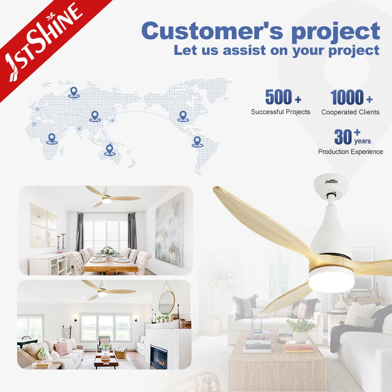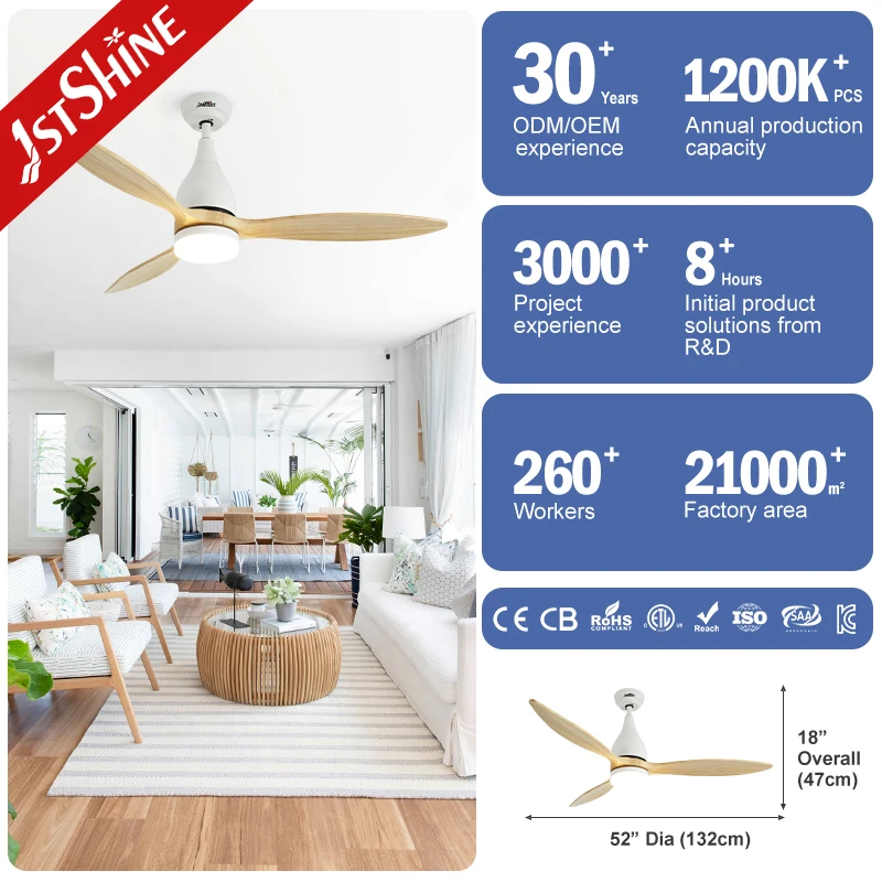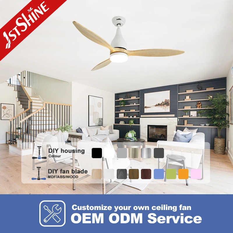 1stshine LED Ceiling Fan Wood Blades AC Motor OEM Color Fancy Ceiling Fan with Remote and LED Lighting