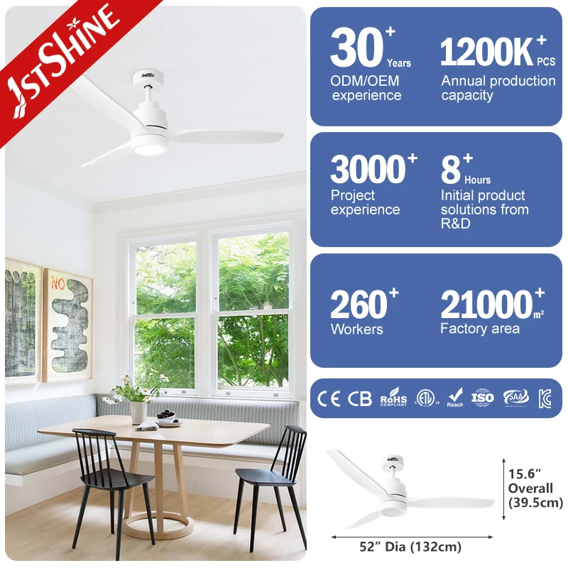 1stshine Ceiling Fan Factory Indoor Natural Wind Low Watt DC Motor White D.I.Y Smart Ceiling Fan with Light