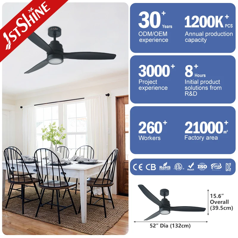 1stshine Ceiling Fan Stylish DC Motor 6 Speeds Remote 2 In1 Function Wood Ceiling Fan with Lighting Optional