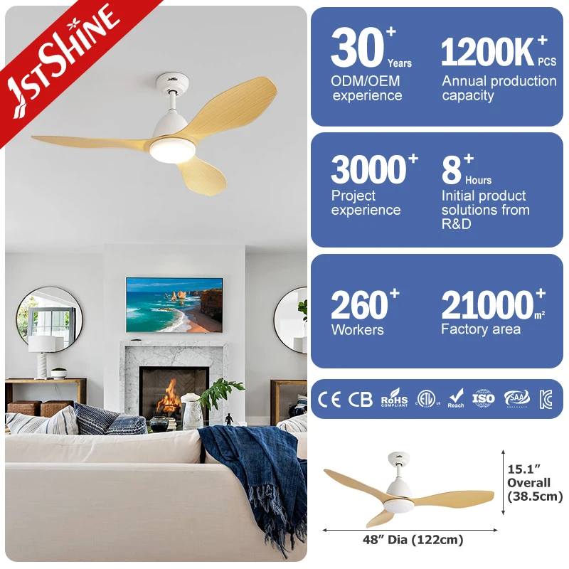 1stshine Ceiling Fan Indoor 48 Inches Silent Plastic Blades Smart Dimmable Ceiling Fan Lights