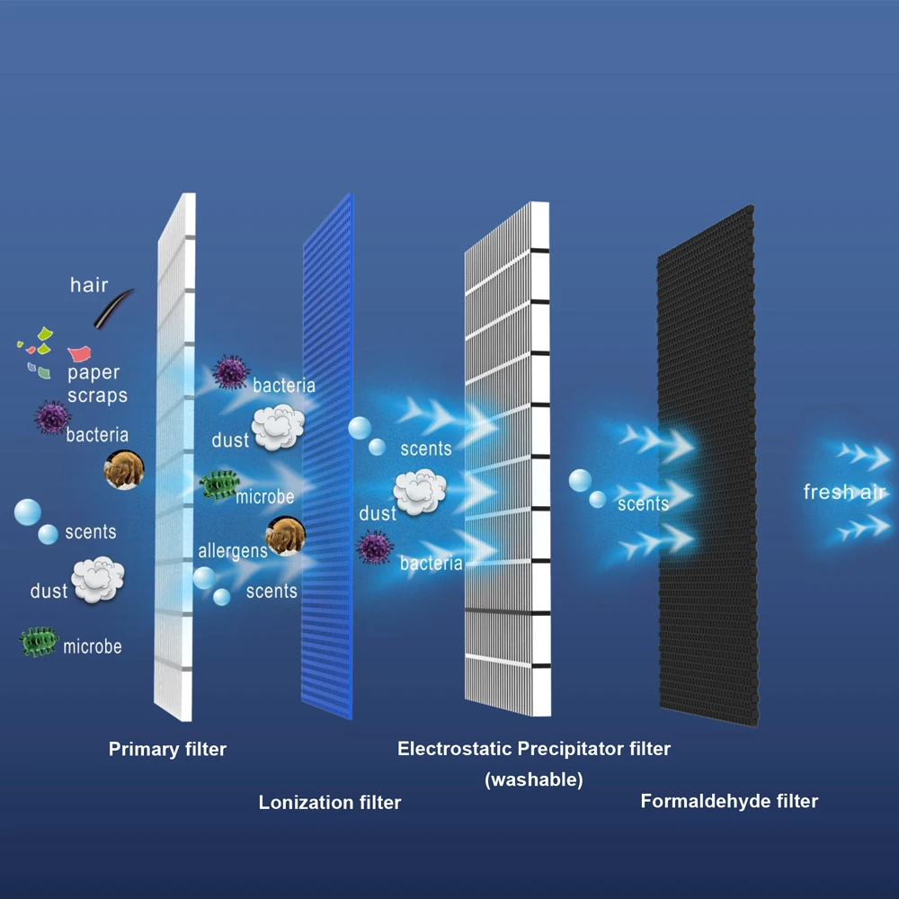 OEM Customized Portable Air Purifier with HEPA Filter Esp Washable Electrostatic Filter Wifi Function Supports EU US Plug Types