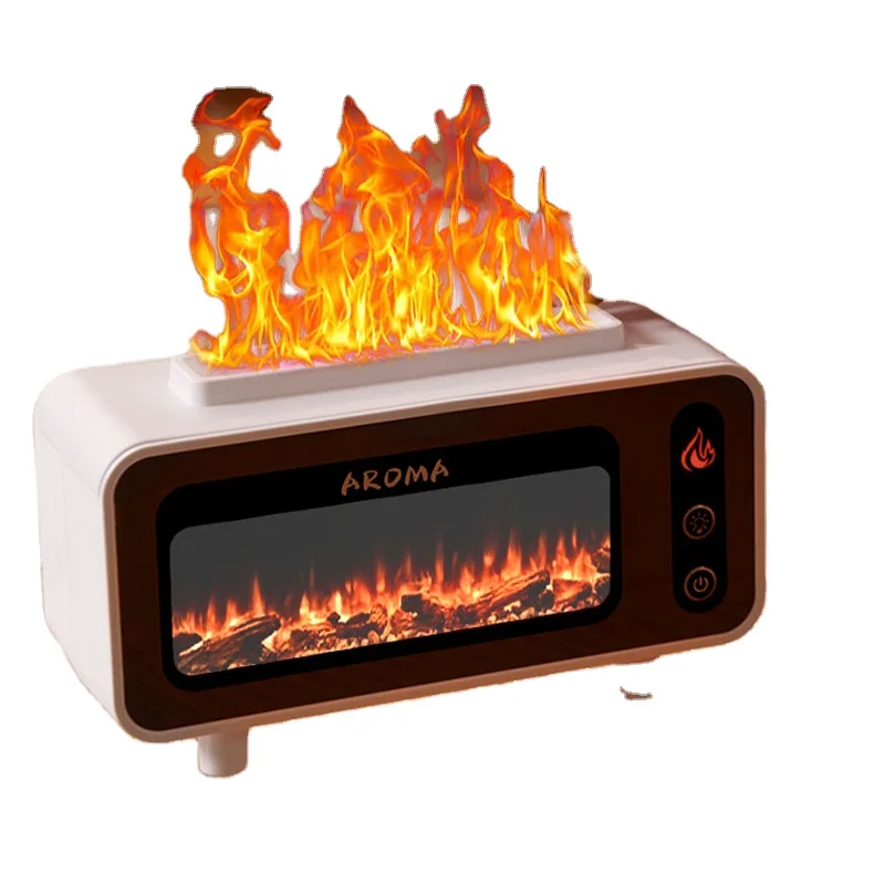 USB LED Smoke Humidifier Electric Air Purifier and Aroma Diffuser in Fire Flame Color for Household Car Use-Plastic Material