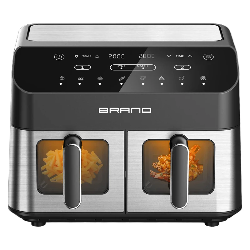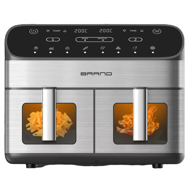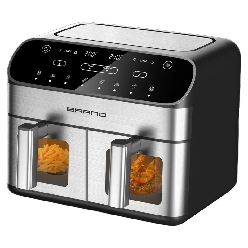 Dual Zone 2 Basket 8L Deep Air Fryer Square Stainless Steel Electric Double Air Fryer with Dual Basket