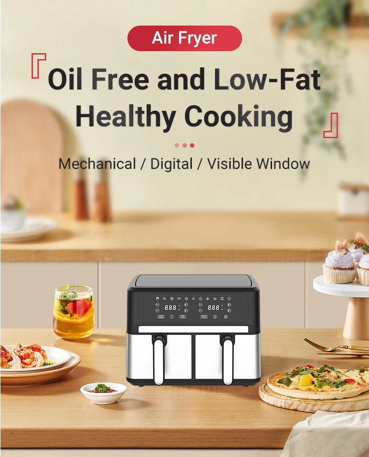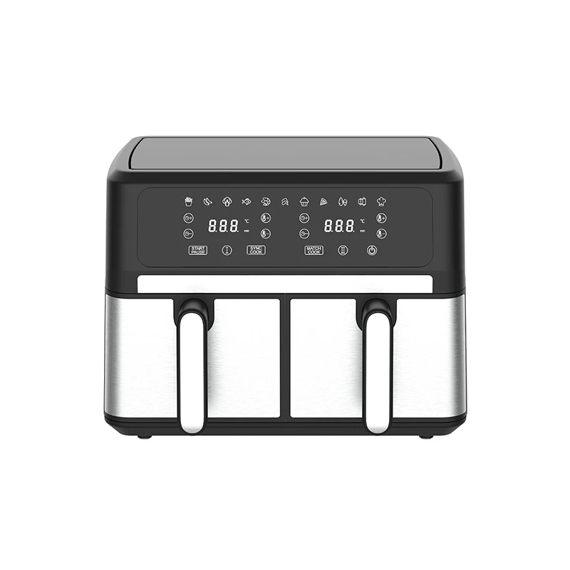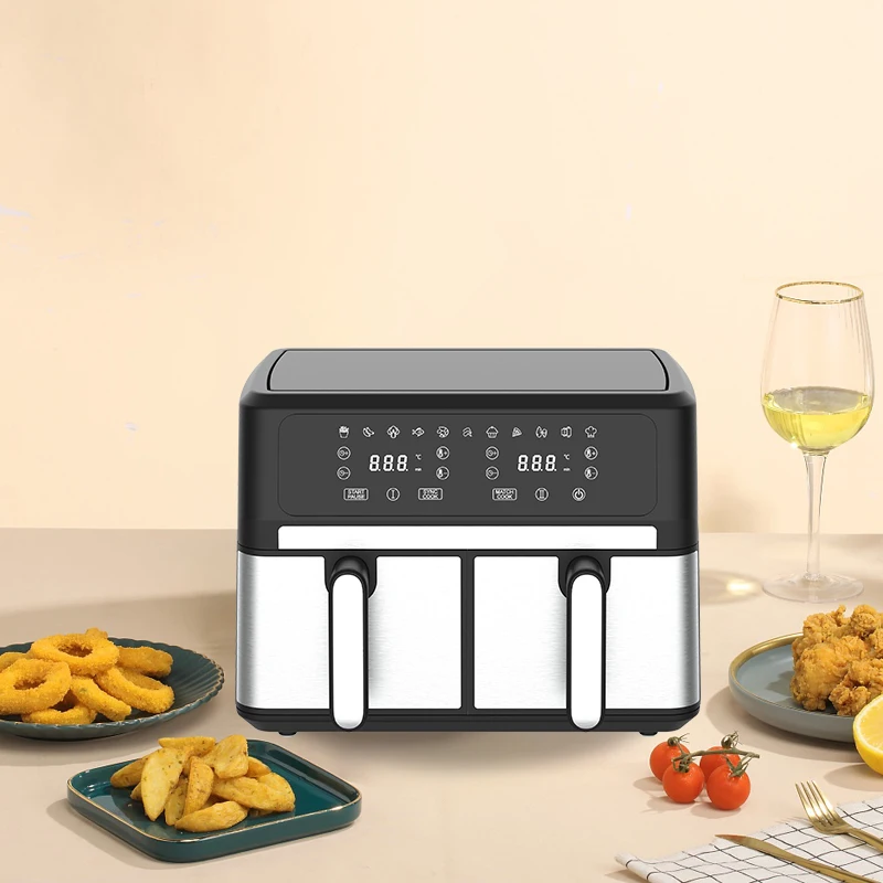 1700W 9L Big Capacity Stainless Steel Double Basket Air Fryer Two Rooms 2 Independent Baskets Dual Zone Air Fryer Oven