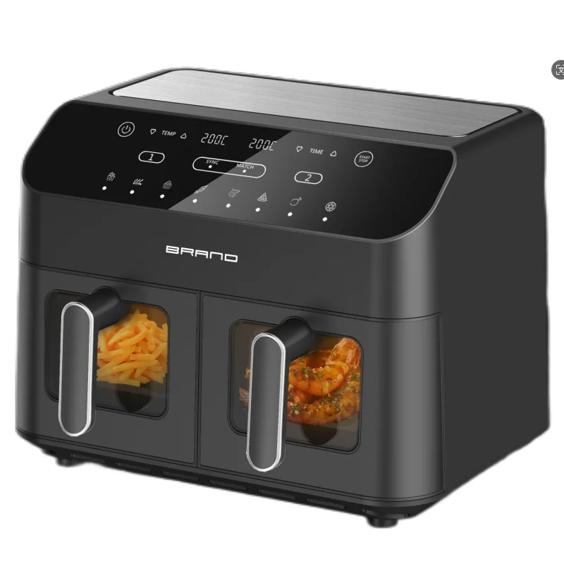 8L/9L/10L/12L Digital Dual Air Fryer Smart Menu Kitchen Appliance Square Electric Double Pot for Household Use
