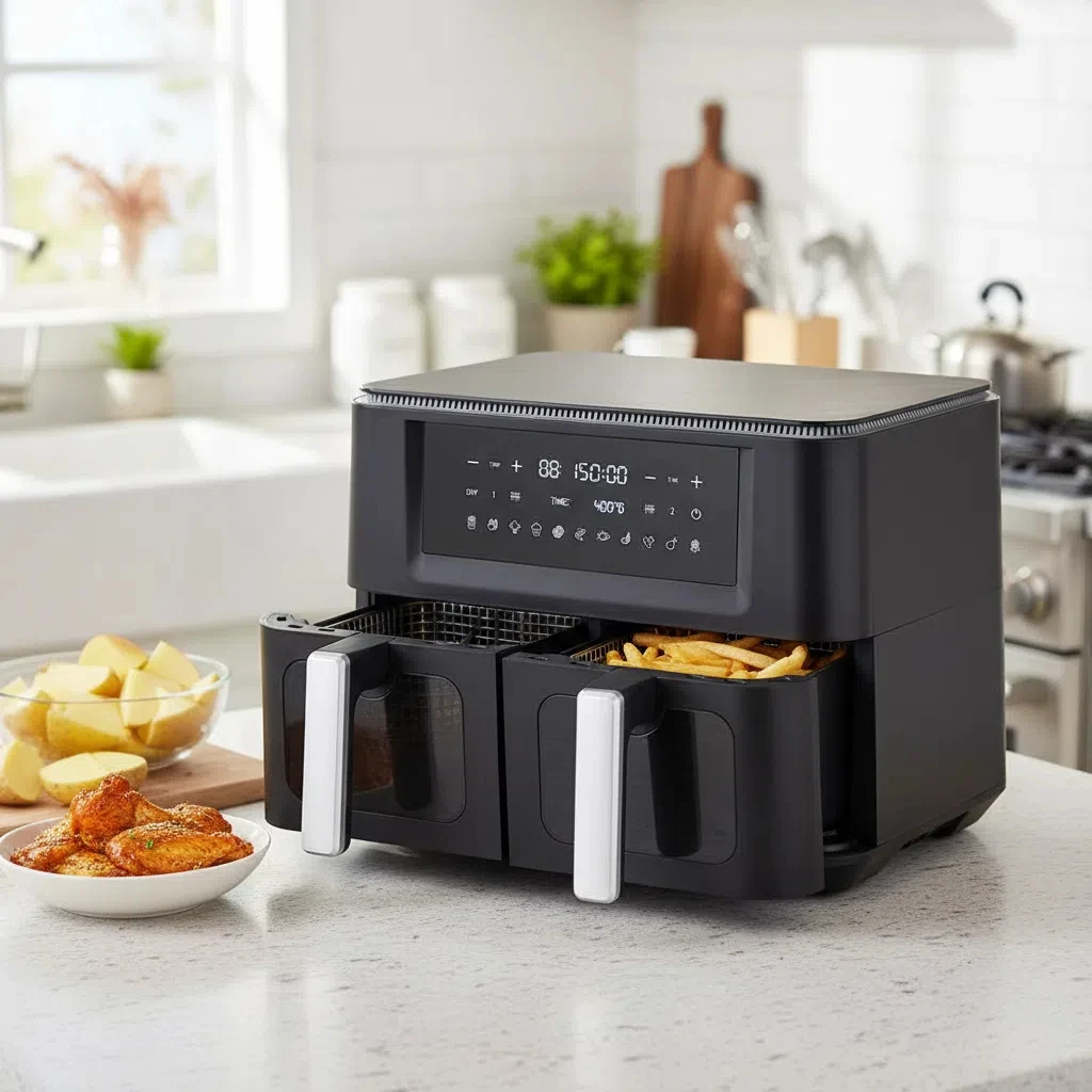 9L Large Double Air Fryers Touch Screen Oilless Air Fryers Smart Air Fryers Dual Basket Independent Control Multi-functions