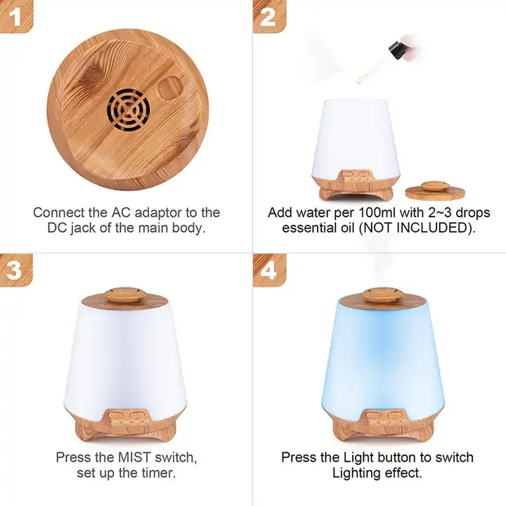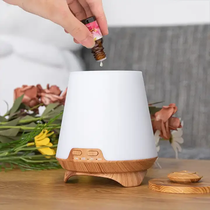 200ml Capacity Decorative Family Bedroom Wood Grain Aroma Essential Oil Diffuser With 7-color Cycle Light