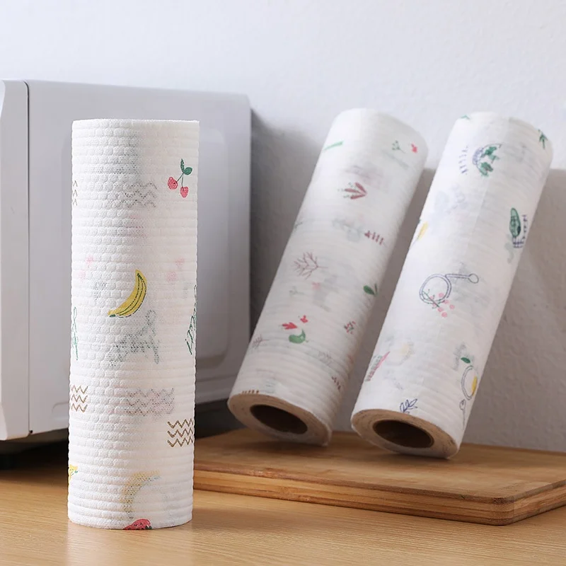 Eco-Friendly Disposable Dish Towel Non-Woven Kitchen Cleaning Cloth Absorbent Paper Packaged in Free Table Use Bag