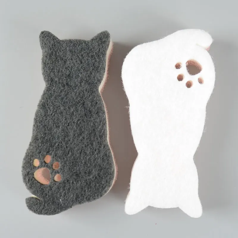 Cat and Fish Shape Animal Kitchen Clean Sponge Heavy-duty Soft Kitchen Cleaning Sponge Scouring Pad for Dish Tableware