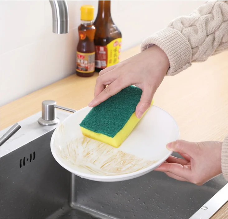 Wholesale Bulk Rectangle Dish Washing Sponge House Cleaning Sponge PU Sponge with Scouring Pad