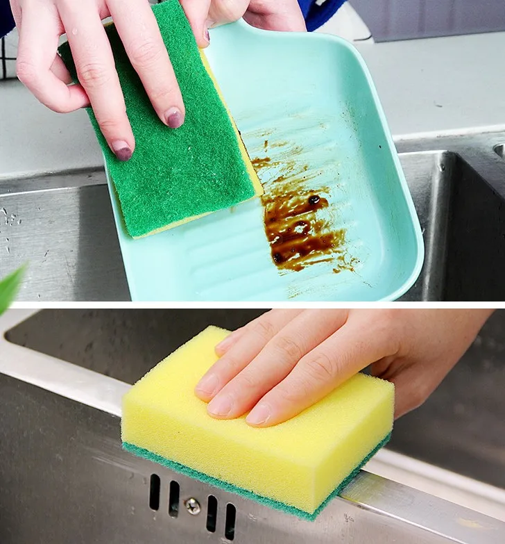 Yellow Green Sponge Pad Powerful Kitchen Cleaning Polyurethane Sponge for Kitchen Cleaning Use Polyester+polyurethane Sponge