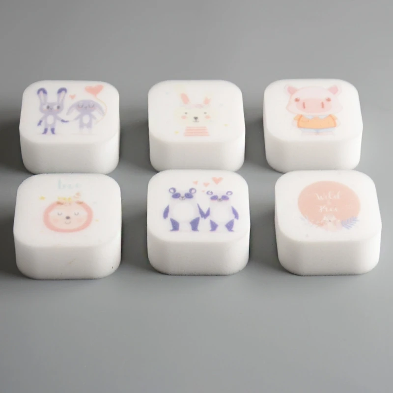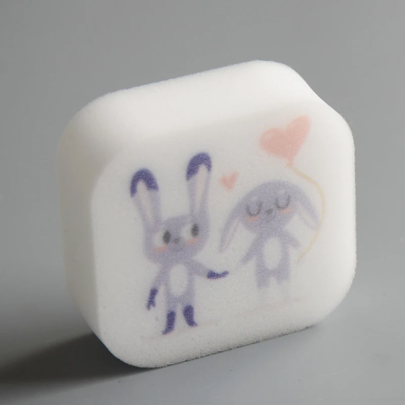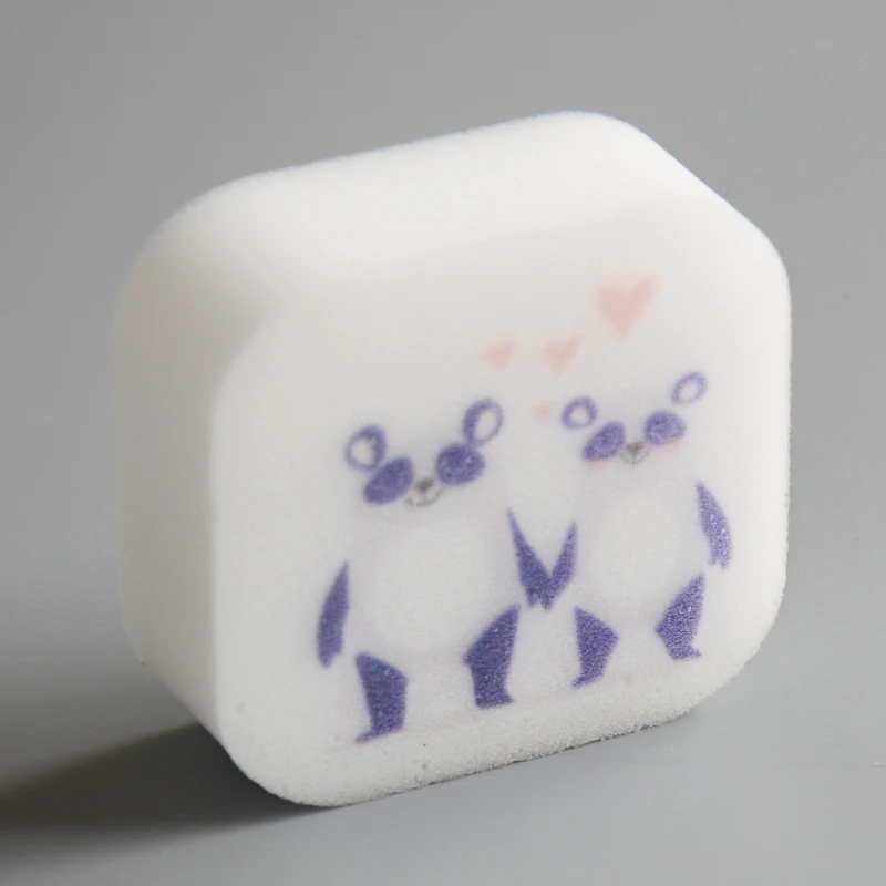 Printed Shape Logo Double Layer Printed Cute Melamine Sponge Kitchen Cleaning Sponge Daily Use White Sponge