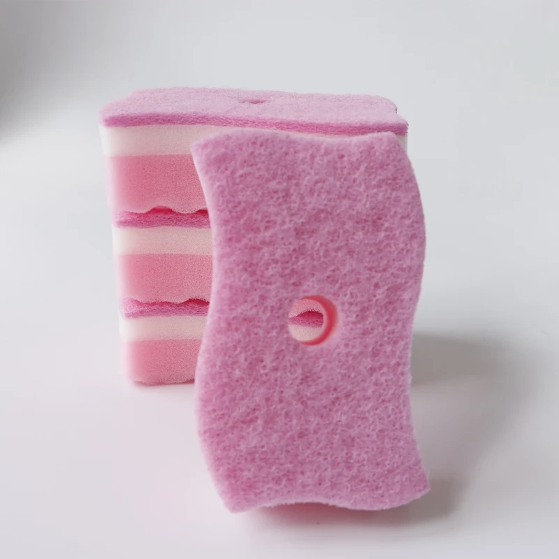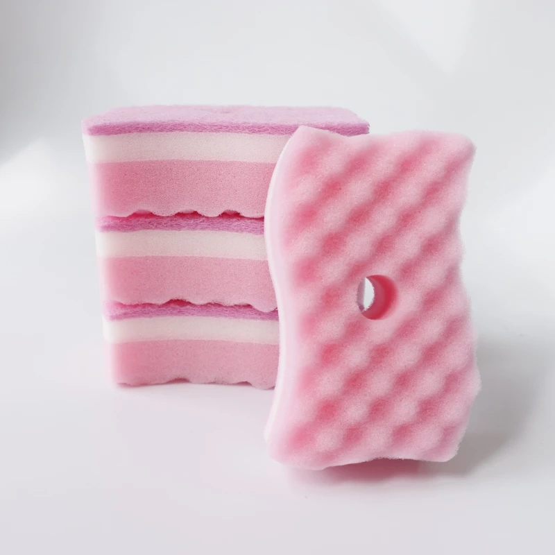 SW Kitchen Pink Sponge Cleaning House Household Scouring Pad PU Sponge 3 Layers Thick Sponge
