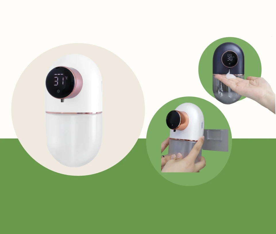 High-End 320ml ABS Automatic Induction Soap Foam Gel Dispenser Wall-Mounted Rechargeable Type-C Oval Pebble Design LCD Display