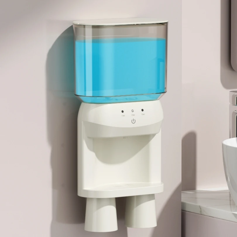 600ml tank Wall Mount Automatic Sensormouthwash Dispenser with Magnetic Cup Holder Mouthwash Dispenser Usb Touchless